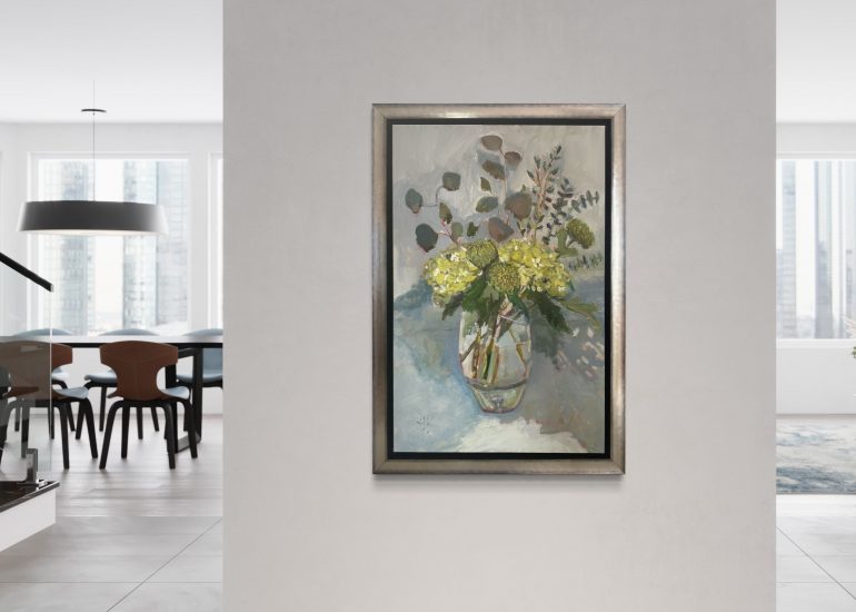 A timeless decorating favorite, a dramatic still life painting as a focal point. In your living room or mud room …lol. Highlighting an area...